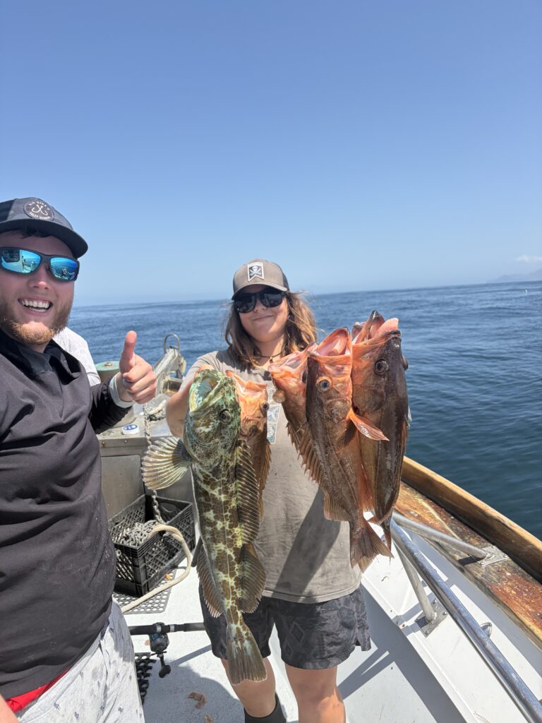 Good afternoon Matt checking in from the Stardust. We fished Santa Rosa island in beautiful weather and started our morning looking for whitefish. With a big swell rolling through and the water turning over it kinda put them in a funk so we made a move to deeper water and threw on limits of quality rockfish that ended up having a few whitefish with them.
